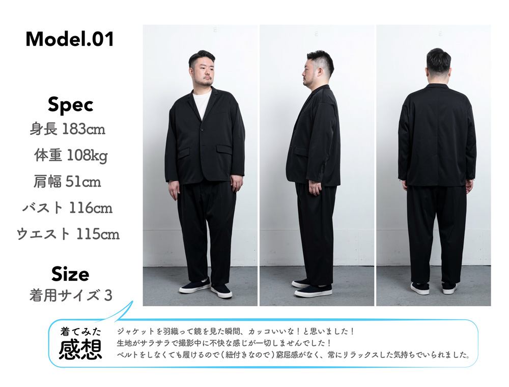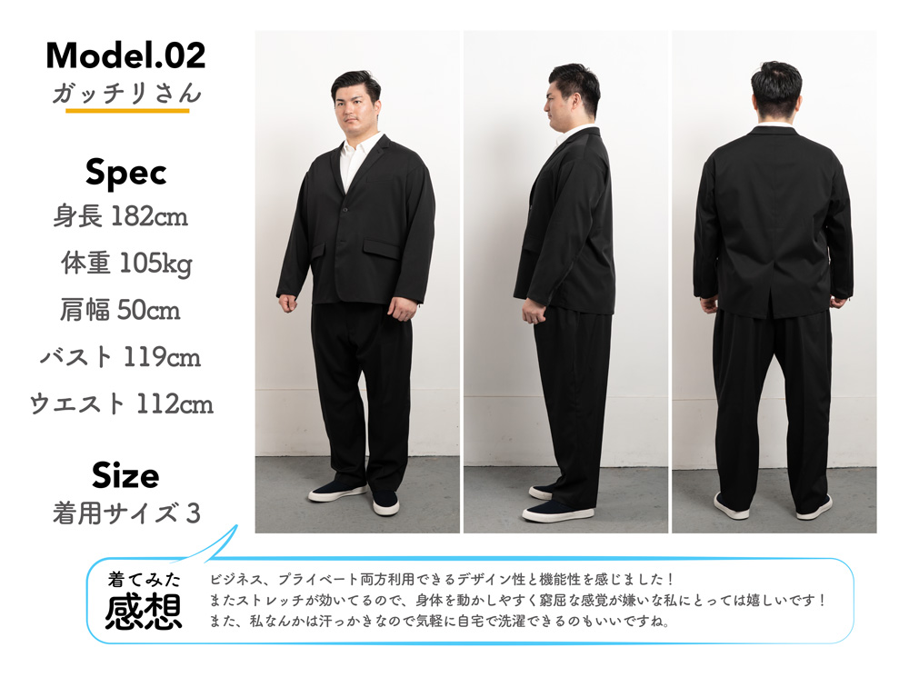 身長176cm 体重100kg バスト120cm ウエスト110cm 着用サイズ3