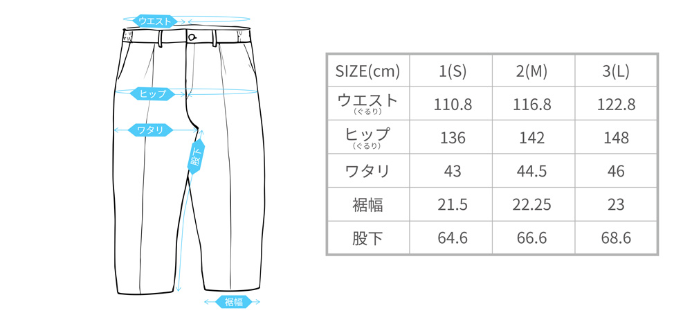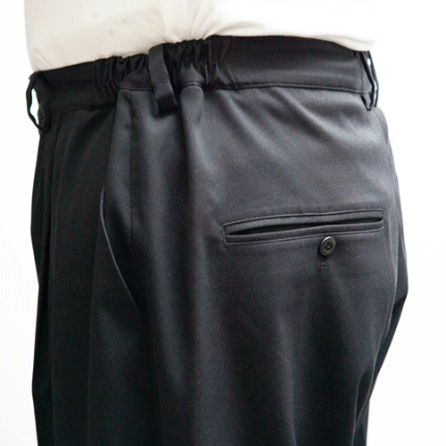 パンツは特にシルエットが大事。 ウエストは楽ちんのゴム仕様だけど、 ゴムを全体ではなく、両脇だけに入れることで、 お尻が膨らんで見えるのを回避。