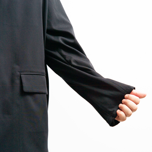 ジャケットの脇下に隠しファスナーがあり、 暑い時に開ければ空気の入れ替えができて、 涼しく快適。